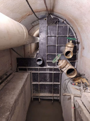 The proposed solution included a robotic inspection to detect structural issues, installation of a ventilation system to allow safe worker access, removal of 125 m³ of ore from inside the gallery to enable complete sealing, treatment of water infiltration through polymer injection and repair of corroded steel, installation of a new drainage system and sealing of 430 meters of the gallery.