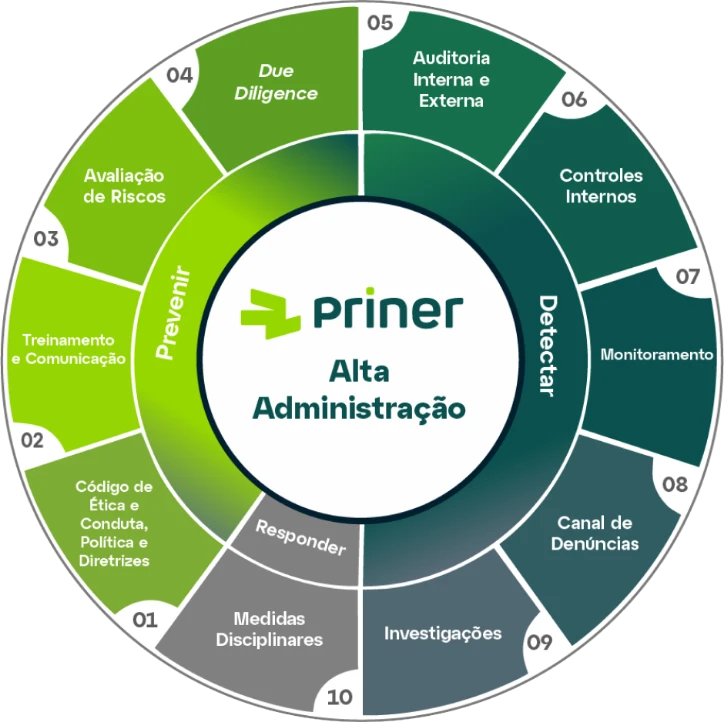 Fazer o certo é um princípio inegociável para nós e está presente em cada decisão da Priner. Atuamos com rigor contra qualquer prática corrupta ou desonesta e repudiamos expressamente toda e qualquer forma de corrupção, fraude, suborno, favorecimento indevido, tráfico de influência, extorsão, pagamento de propina e demais atos ilícitos que contrariem a legislação vigente e as normas internas da Priner.